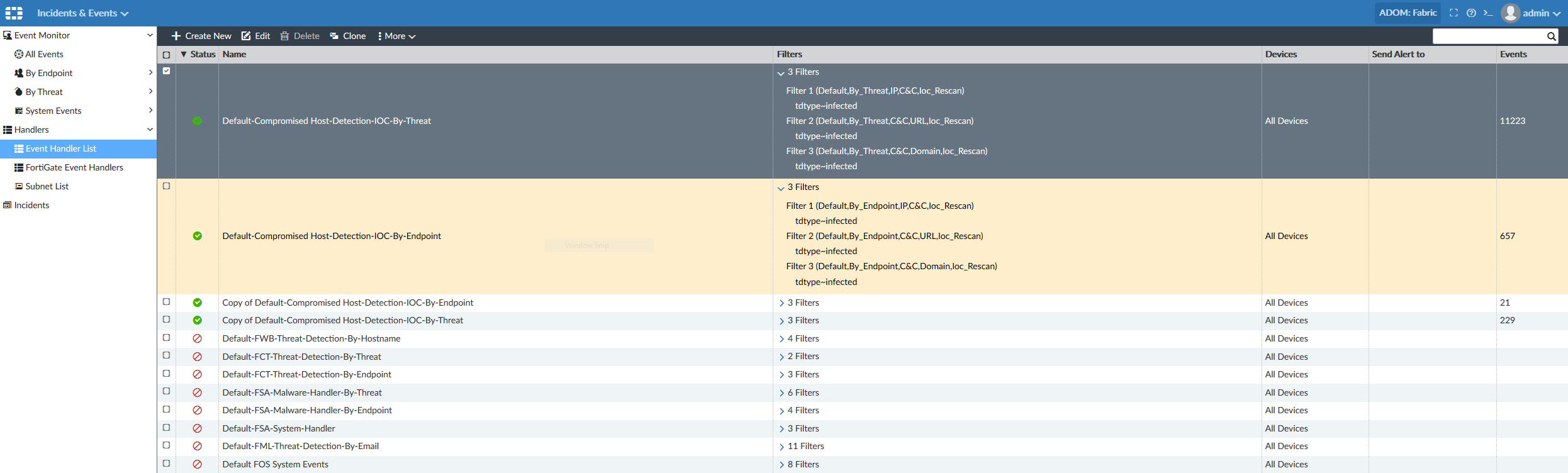 - Under Compromised Hosts Rescan Current ADOM Settings toggle Enable Current ADOM Compromised Hosts Rescan to the On position.
