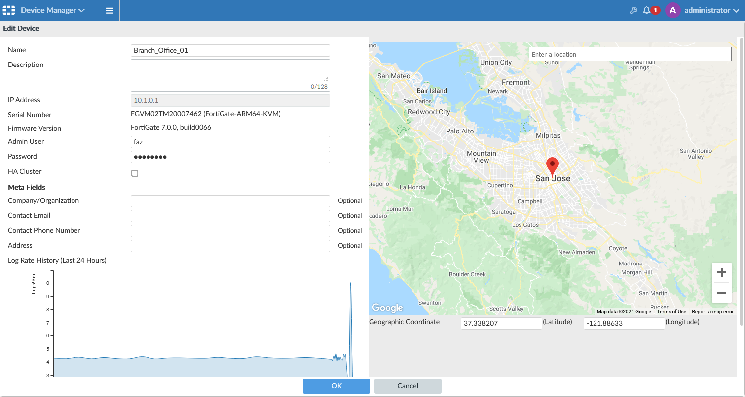 If the FortiAnalyzer serial number is not specified on the FortiGate or if Certificate Verification is disabled, the admin user/password specified here is used by FortiAnalyzer to login to the FortiGate.