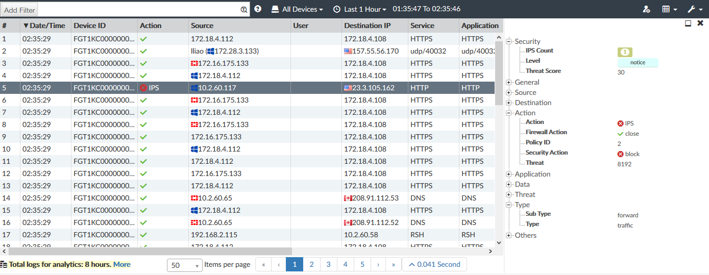 If the log message contains IPS signature information, you can click the IPS signature link under Attack Name to view the IPS Signature details in a dialog window. |
