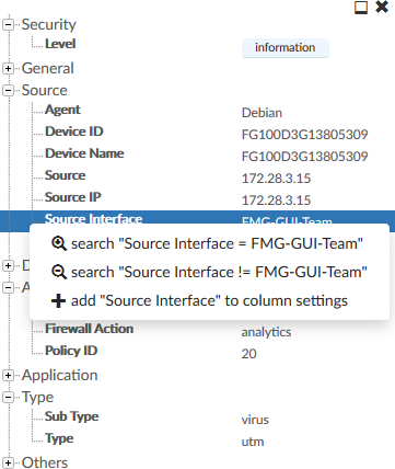 If the log message contains UTM logs, you can click the UTM log icon in the log details pane to open the UTM log view window. |