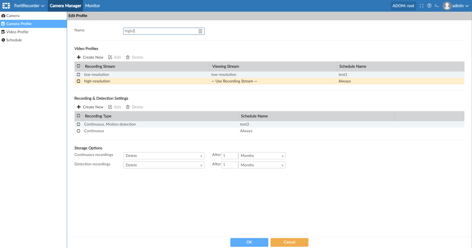 - Go to FortiRecorder > Camera Manager > Camera Profile.