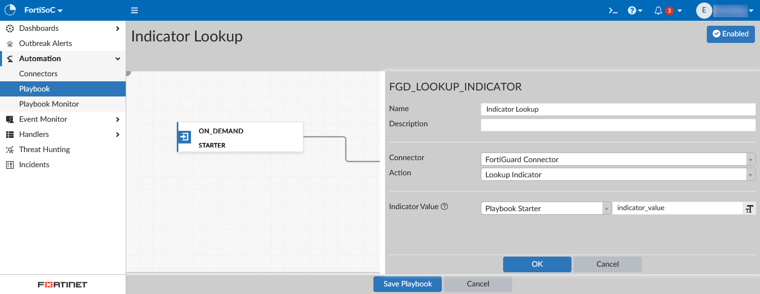 Select Playbook Starter and indicator_value.