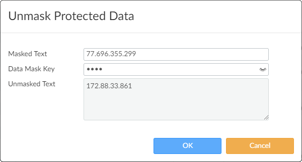 The Unmask Protected Data dialog box displays with the field you clicked already entered.