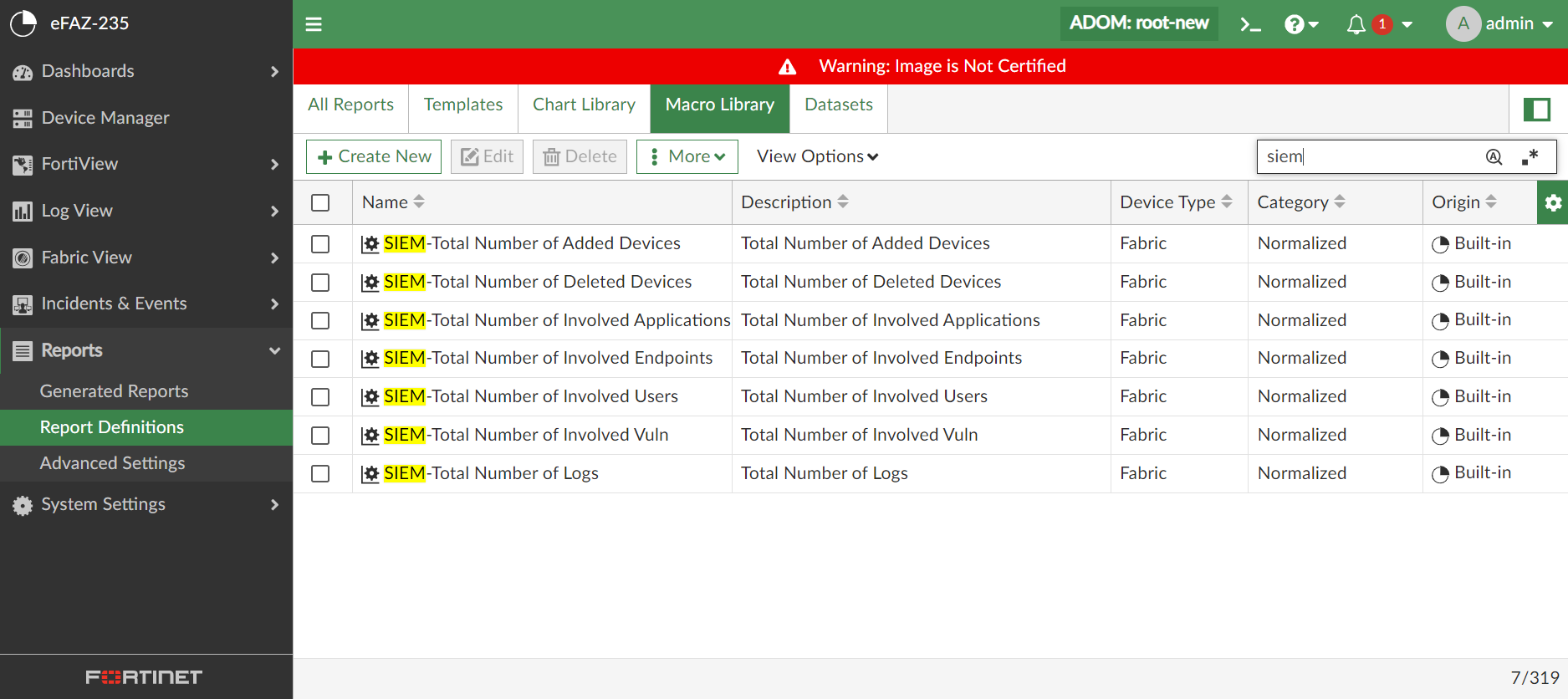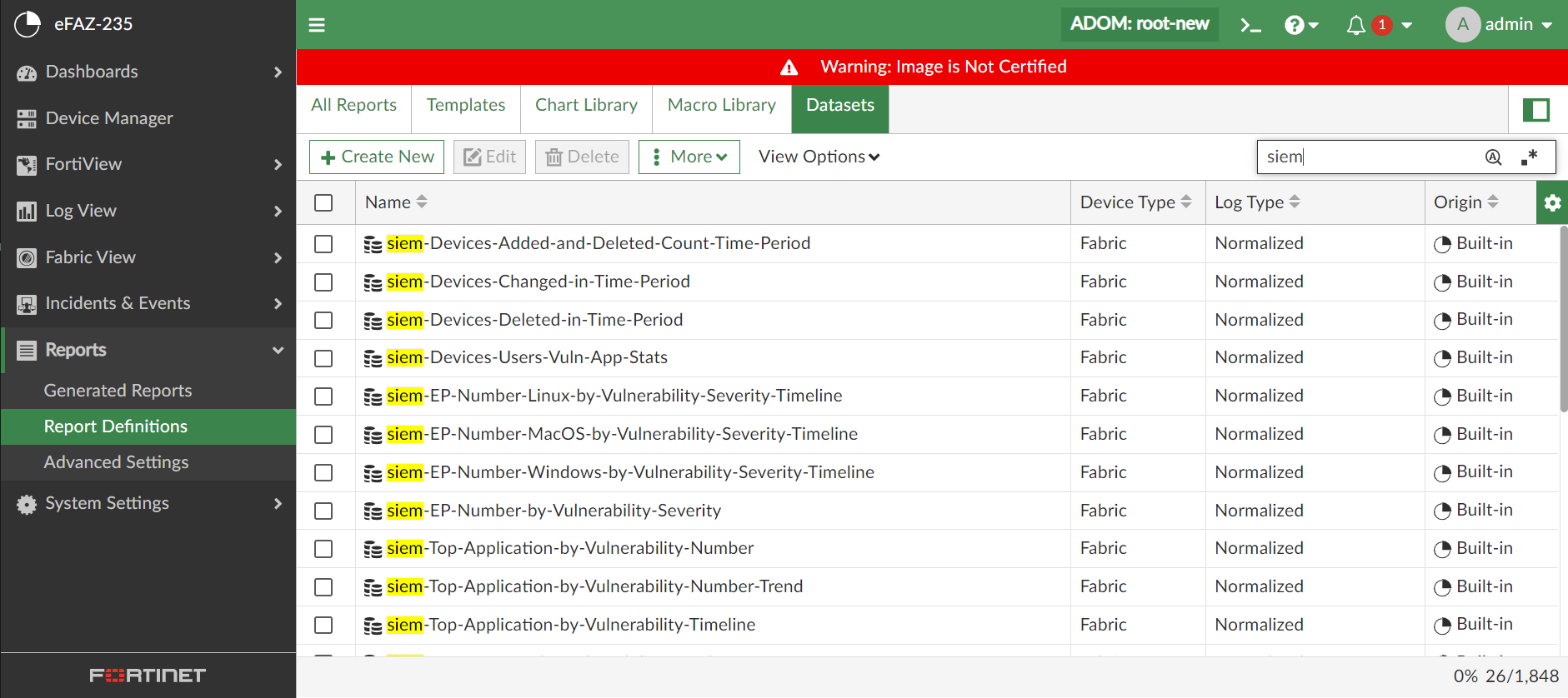 FortiClient EMS connector(s) must be created and enabled to generate this report with data. The EMS connector can insert the data into FortiAnalyzer Fabric SIEM logs. For more information about configuration, see below.