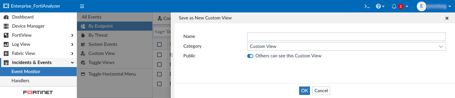 - Enabled: Others can see this custom view displayed in Incidents & Events > Event Monitor > Custom View.