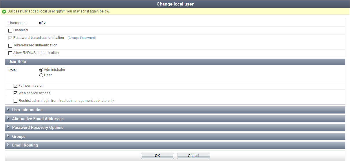 Leave this option selected. Select [Change Password] to change the password for this local user.