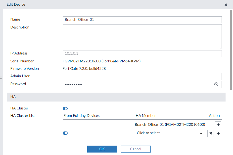 - Add more devices to the HA cluster as necessary, and click OK.