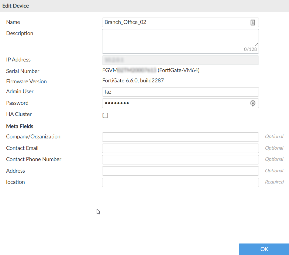 - Under Meta Fields, complete the options labeled as Required, and click OK.