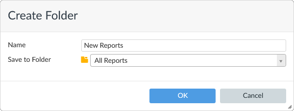 - Specify the folder name and location and click OK. The folder is now displayed in the report list.
