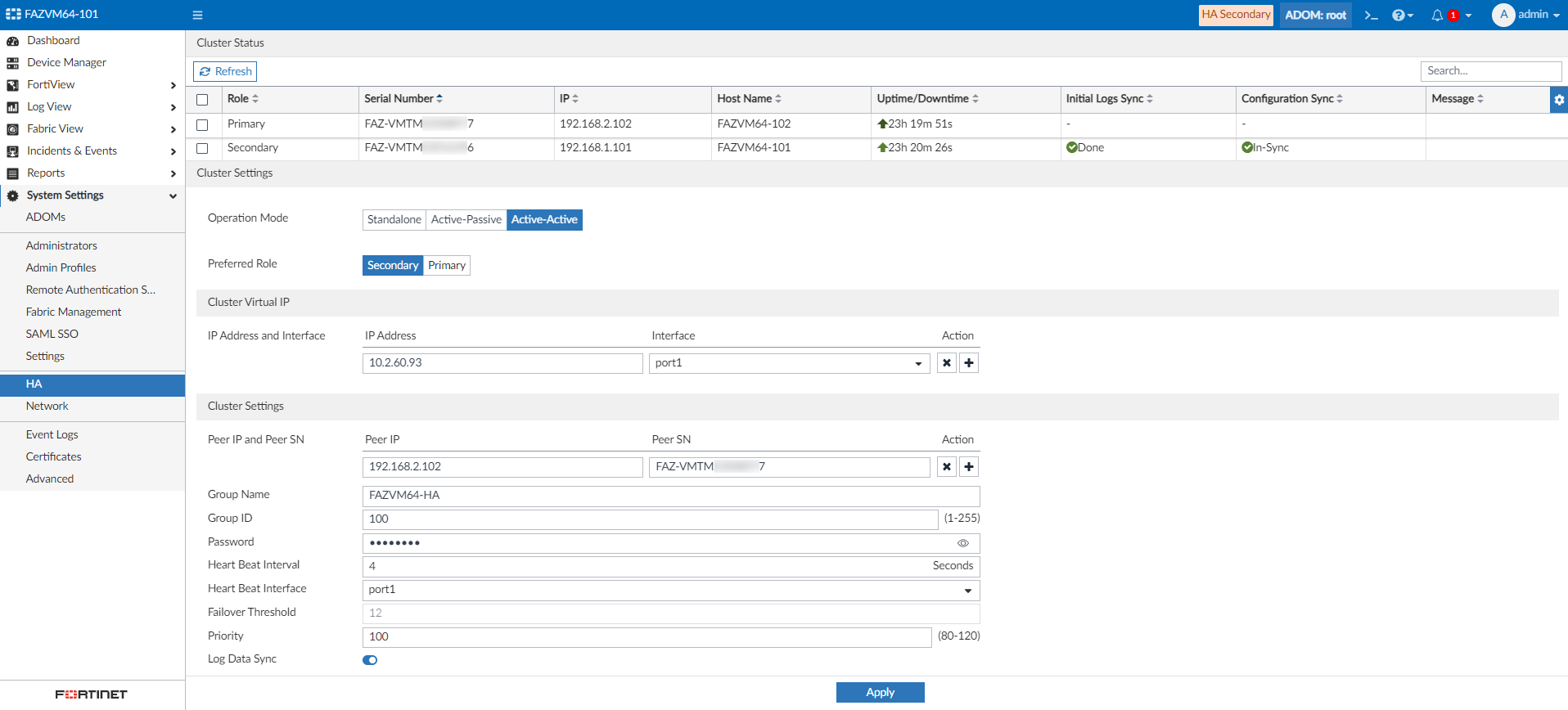 Configure the FortiAnalyzer HA.