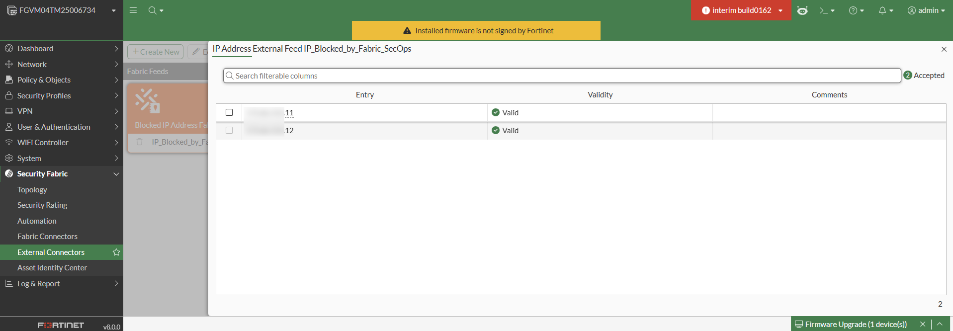Blocking indicators with the FortiManager connector