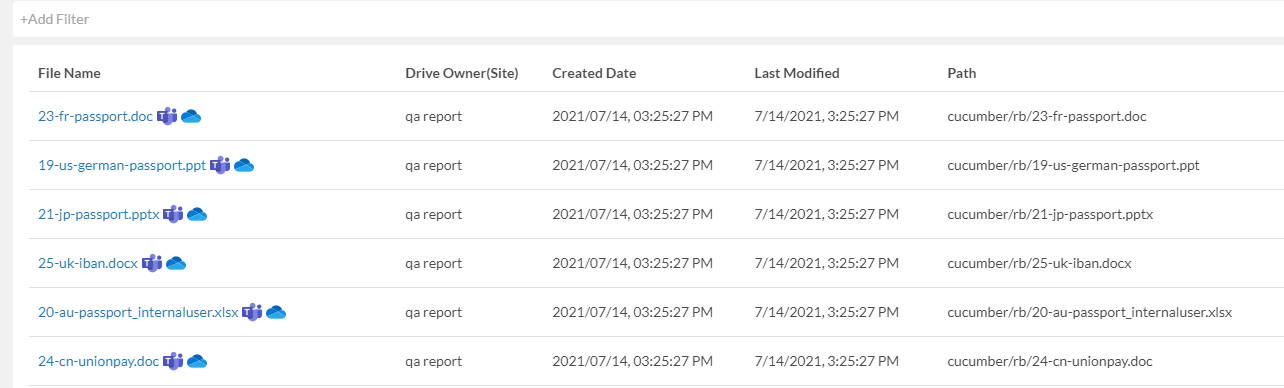 For example, click on the bubble, "DLP Master Card" filter will only show files with Master Card numbers.