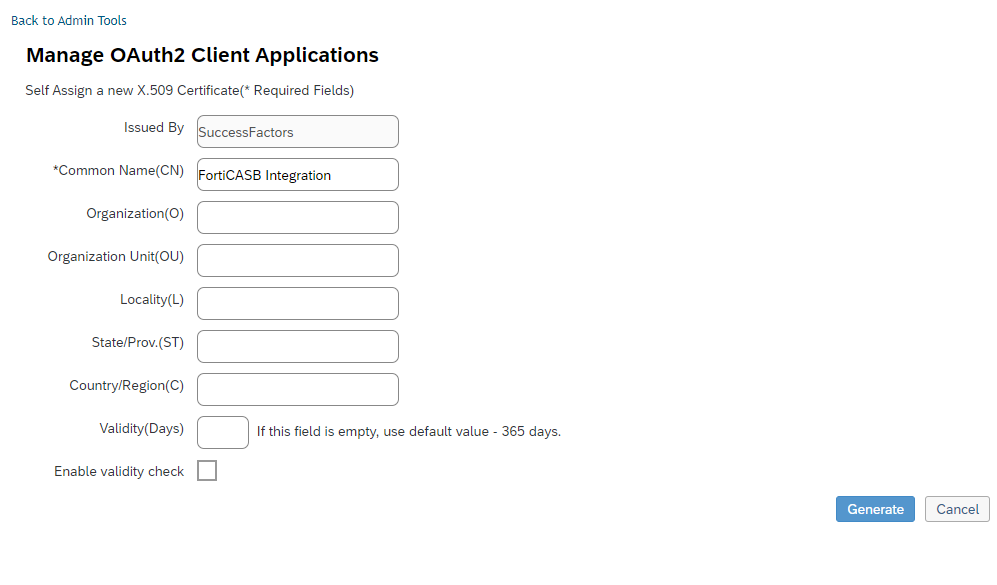 - In "Self Assign a new X.509 Certificate" page, enter a Common Name for the certificate, and click Generate.