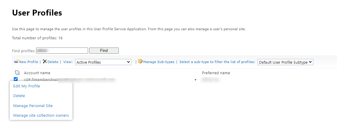 - Find the user, click on user account name, then select Manage site collection owners.