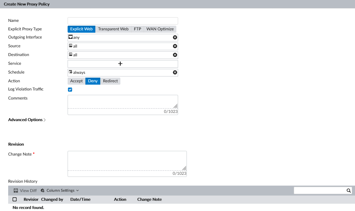 - Web Filter Profile - not available when the proxy type is set to FTP
