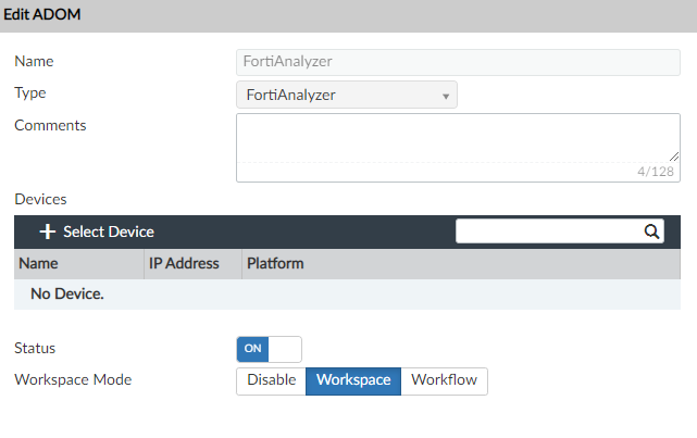Workspace mode can be enabled per ADOM or in all ADOMs.