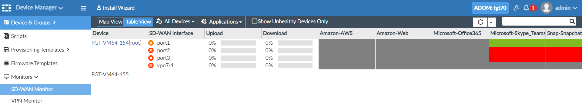 You monitor SD-WAN networks in Table View. You can monitor all devices, or you can drill-down to view details of individual devices.