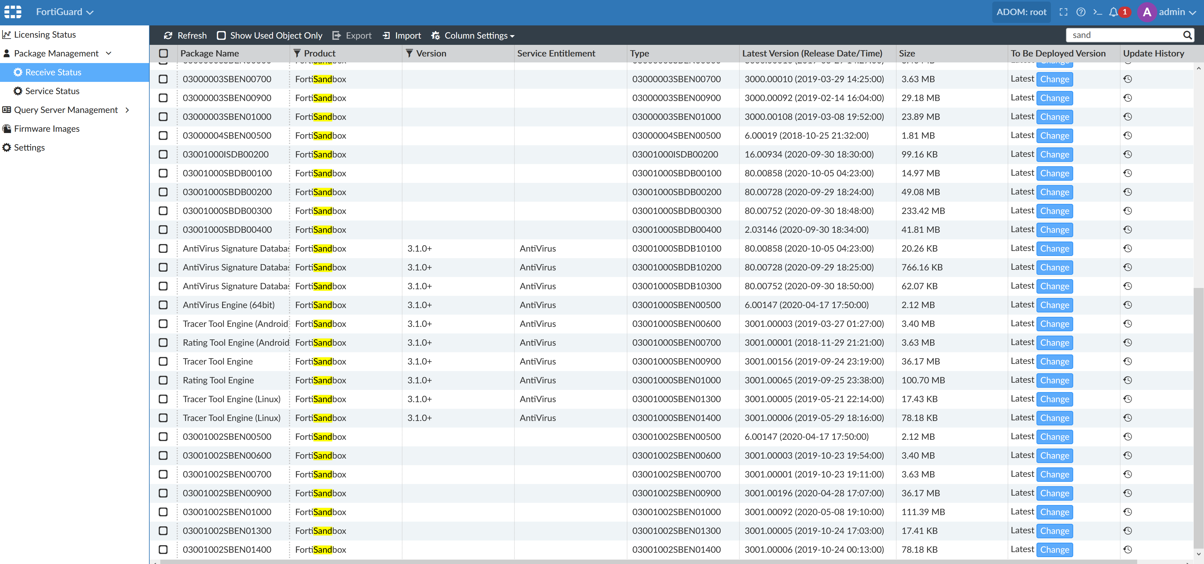 - Go to FortiGuard > Package Management > Receive Status.