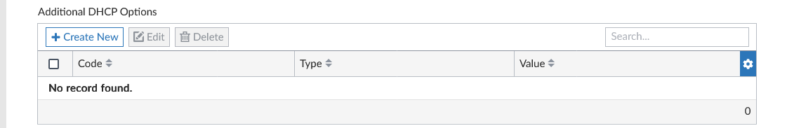 In the Additional DHCP Options menu, click Create New. The Create New Options dialog opens.