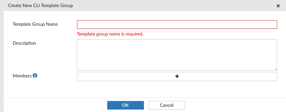 - Click Create New > CLI Template Group. The Create New CLI Template Group dialog appears.