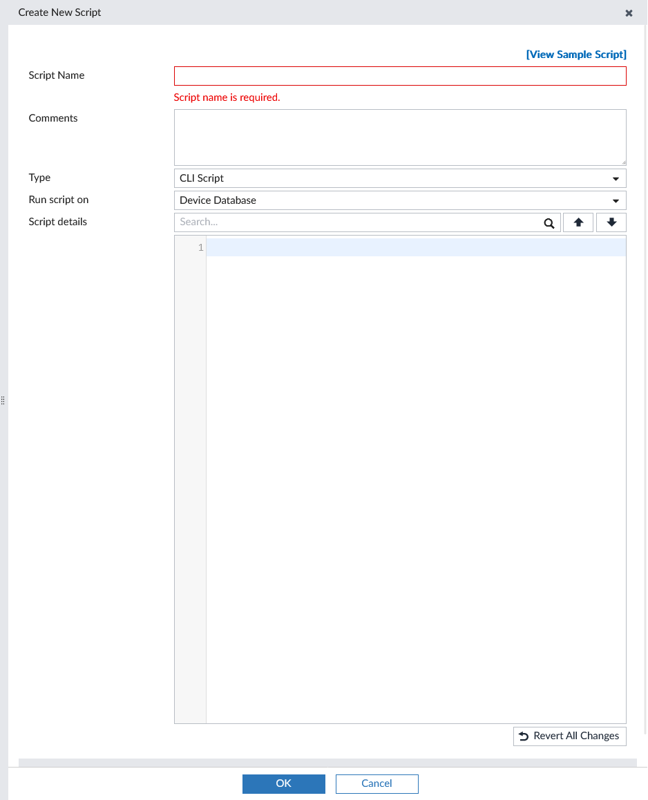 - Enter the required information, then select OK to create the new script.
