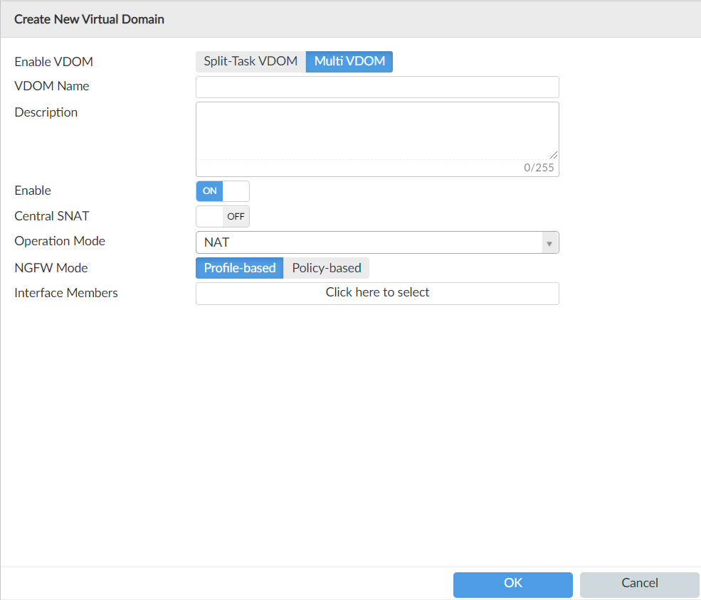 Optionally, enter a description of the VDOM.