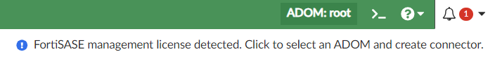 When FortiSASE is on the same FortiCloud account as FortiManager, you will receive a notification in the FortiManager toolbar that the FortiSASE management license is detected. Click on the notification to begin.