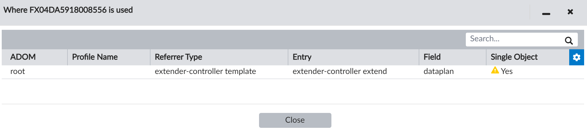 - Select a data plan in the list, and click Where Used. The Where <data_plan_name> is used window displays.
