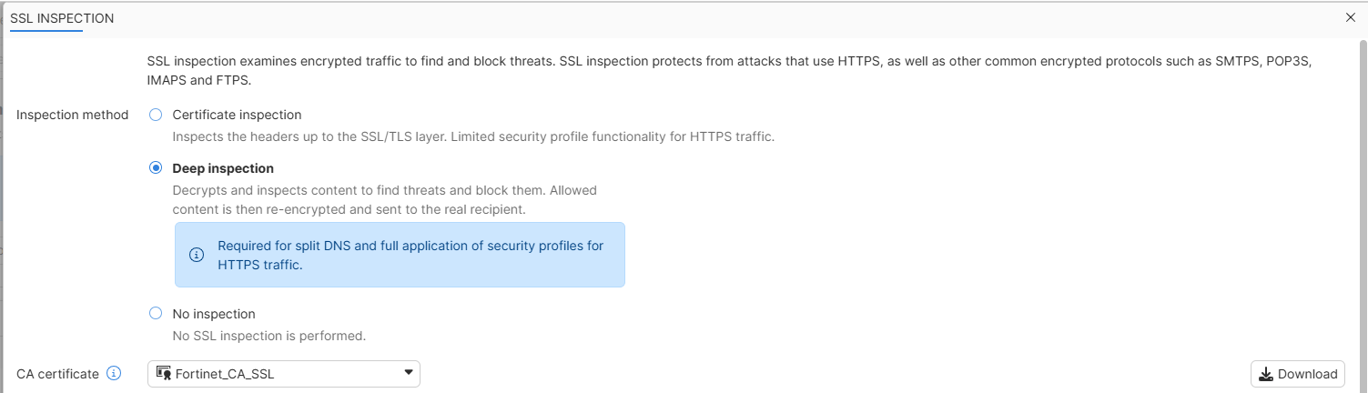 To obtain the FortiSASE root certificate, in FortiSASE, go to Configuration > Security.