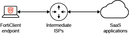 Digital experience monitoring (DEM) serves as a valuable tool for network administrators in diagnosing connectivity and network issues for remote users along with monitoring their real-time network bandwidth, CPU, memory, and hard disk usage. It also enables tracing end-to-end network performance, from an endpoint to a FortiSASE point of presence (PoP) and to a SaaS application using a DEM agent installed on the endpoint. DEM provides insights into potential network issues between a FortiClient endpoint, FortiSASE PoP, SaaS applications, and the internet service providers (ISP) connecting them.
