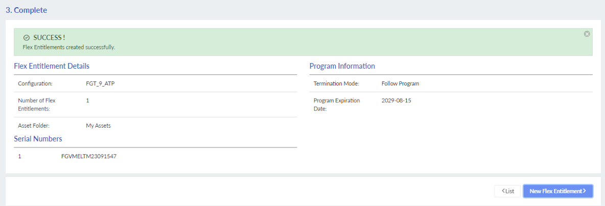 - Review the Flex Entitlement Details and Program Information, and click Submit.