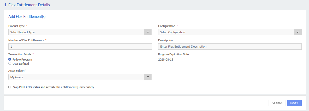 - Go to Flex Entitlements, and click New Flex Entitlement. The Add Flex Entitlement(s) page opens.
