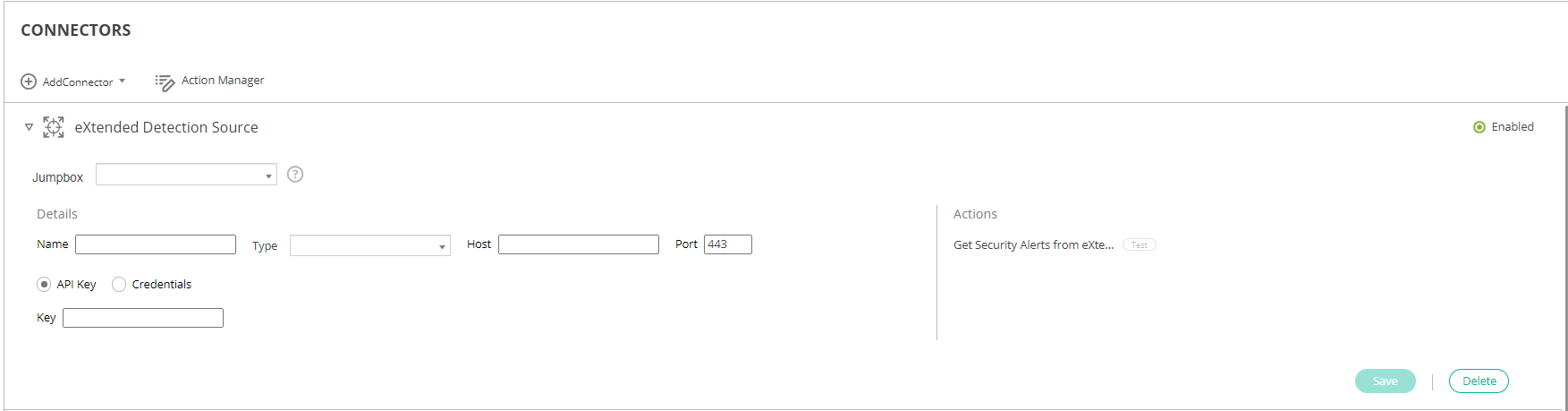 - Click the Add Connector button and select eXtended Detection Source in the Connectors dropdown list. The following displays: