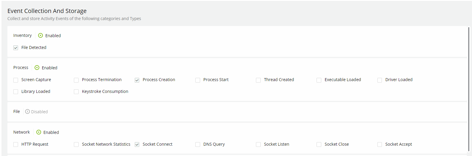 To enable EDR Threat Hunting events collection: