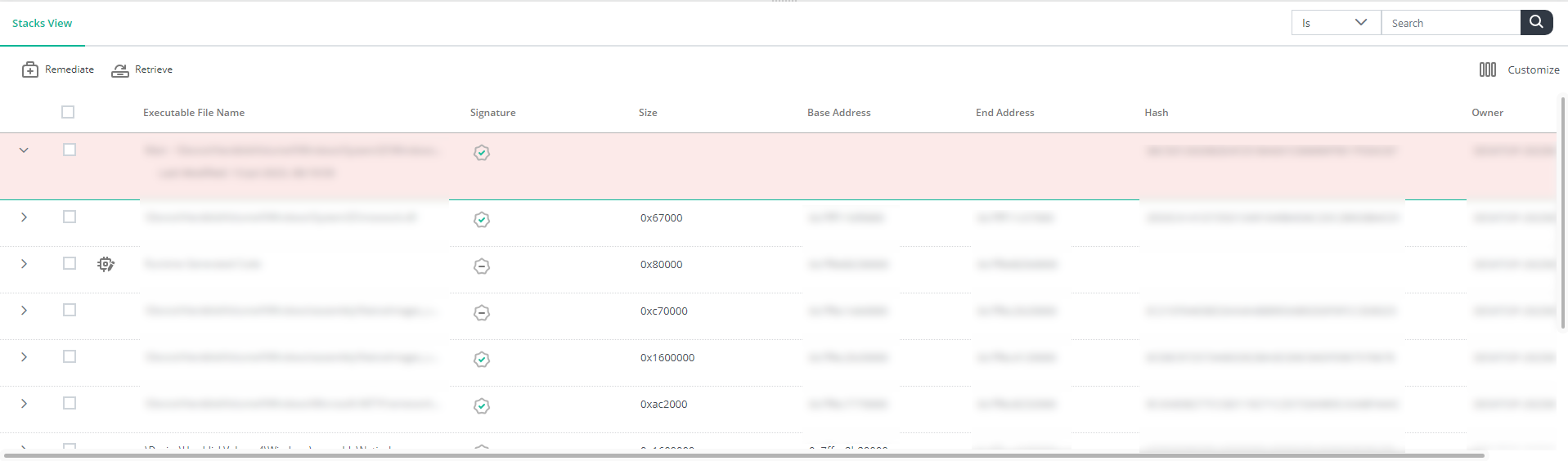 You can also expand a stack to view more details, such as the last modified time (not available for writable memory entries), whether or not the stack entry is of OS executable or console application for executables and DLLs.