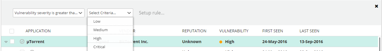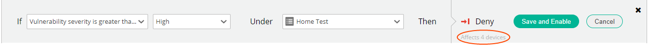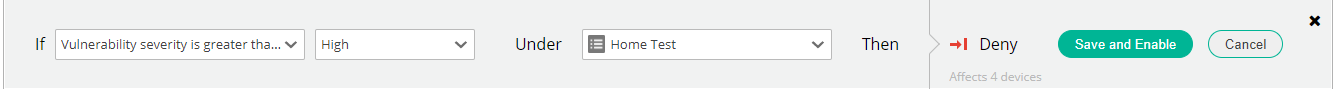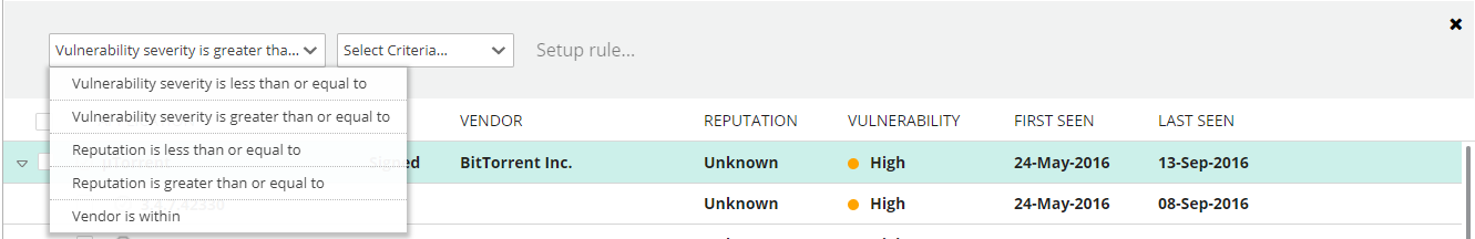 | Vulnerability is greater than or equal to X | This rule enables EDR to block/unblock by vulnerability. In the rules, X represents a user-defined value. |