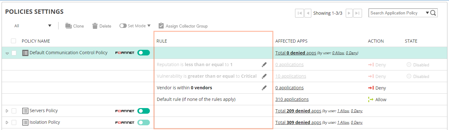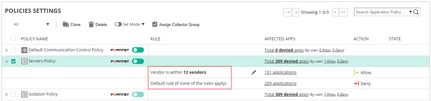 For example, the figure below shows that the Servers Policy has the following rules defined for it: