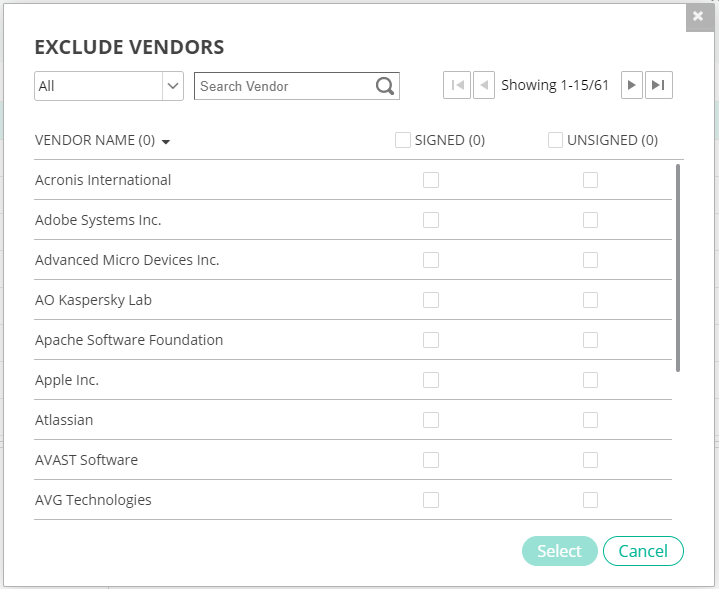 | Vendor is within X vendors | This rule enables EDR to block/unblock by vendor. For this rule, you specify the vendor(s) to include and to exclude. |