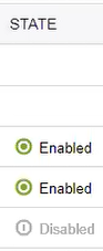 You can enable or disable a rule for a policy by clicking the Enabled/Disabled button in the State column of the applicable rule. This button toggles between Enabled/Disabled.