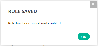 - Click the Save and Enable button to save and enable the changes to the rule. A confirmation window displays, confirming the rule change.
