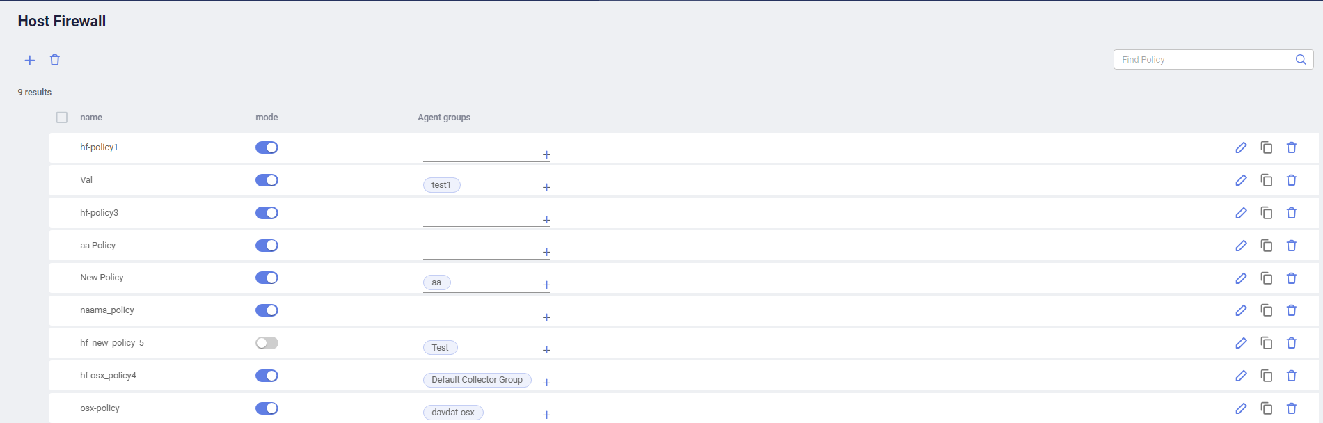 Enable or disable the host firewall policy or a specific rule using the mode button.