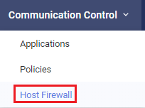 Use the Communications Control > Host Firewall page to configure host firewall policies to control incoming and outgoing network traffic to protect endpoints against unwanted connections based on remote addresses, protocols, or applications in use to reflect the organization’s network policies. Host firewall policies reduce the attack surface by protecting the host while working outside the enterprise network (public Internet, home, or other networks).