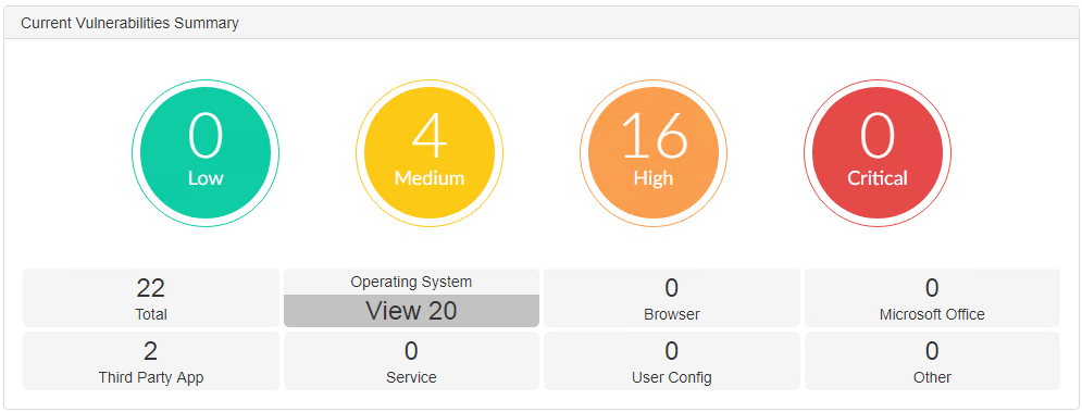 In this example, there are 22 total vulnerabilities, 20 of which are OS vulnerabilities. Click the Operating System tile.