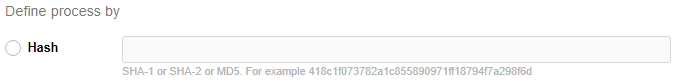- Hash: Mark the Hash radio button and specify the Hash that uniquely identifies this process.
