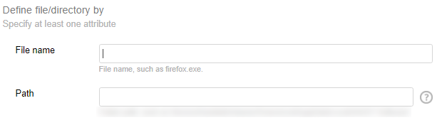 - File Name / Path / Signer: Mark the Attributes radio button and check at least one of the File Name / Path / Signer fields checkboxes and fill the relevant values, as follows: