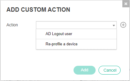 - To trigger a custom action on the Firewall, click the Add Action button to display the following popup window: