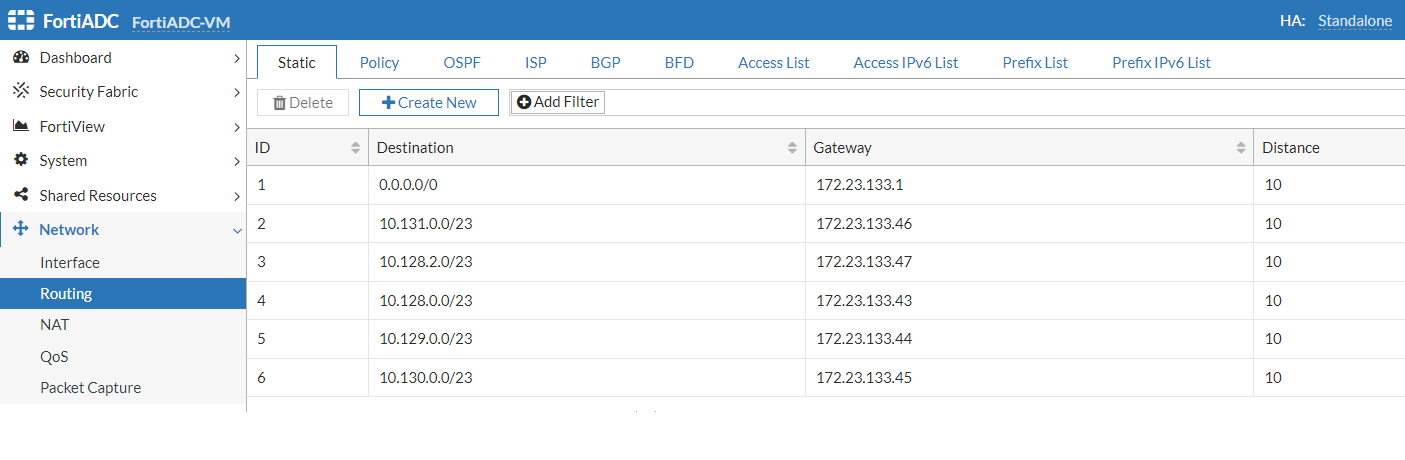 Check the deployed Routes in FortiADC
