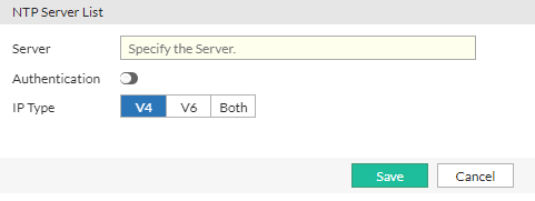To find an NTP server, go to http://www.ntp.org.Authentication Enable to apply authentication keys to secure the NTP server. This is disabled by default. IP Type Select the IP type from the following:
