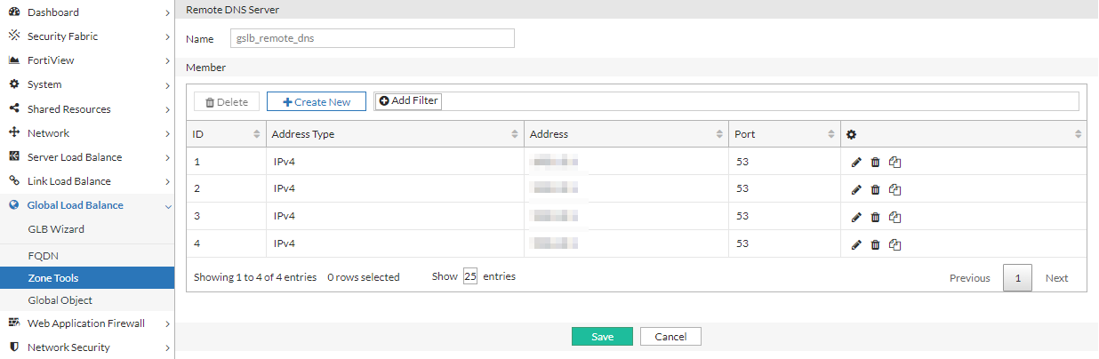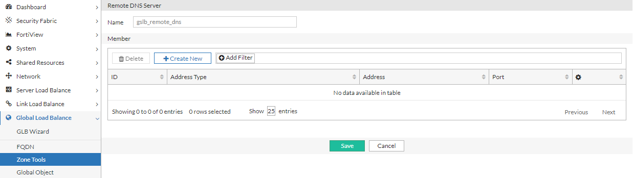 Click Create New to display the configuration editor. Enter a name for the remote DNS Server and click Save to enable configuration for the Member section.