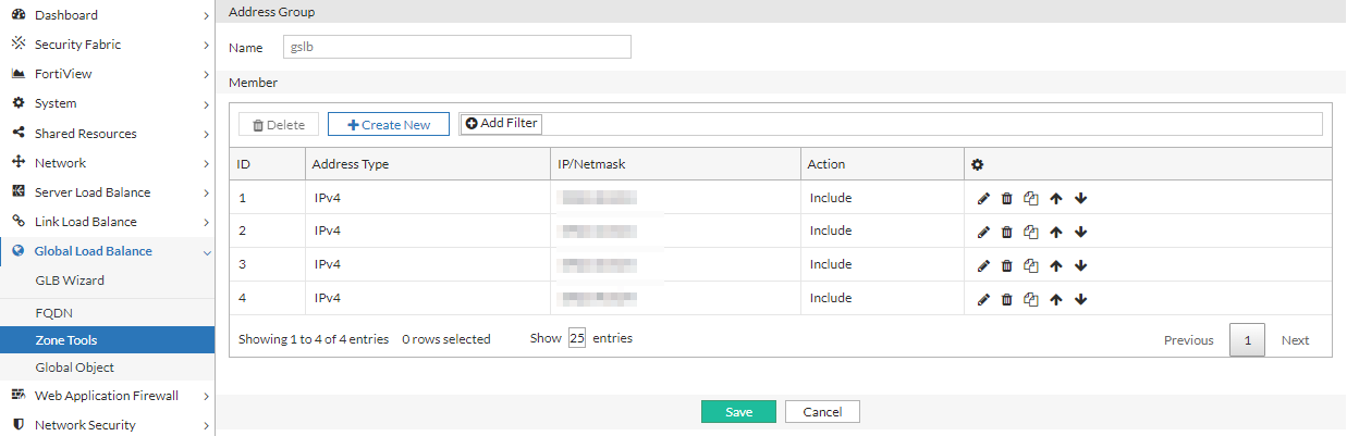Navigate to Global Load Balance > Zone Tools. Click the Address Group tab.
